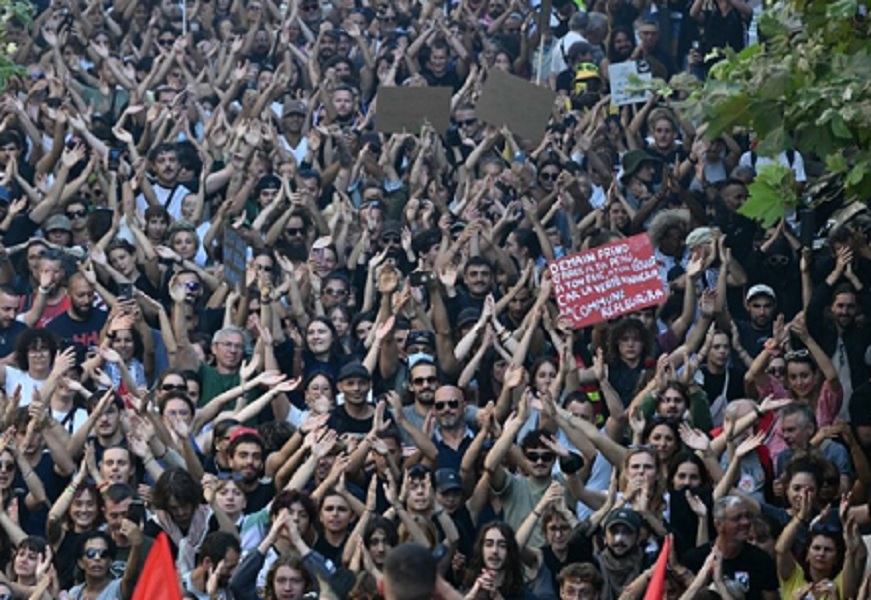 “Não é apenas Bayrou que deve cair, mas todo o sistema podre,” manifestantes em Paris gritaram o durante o protesto.