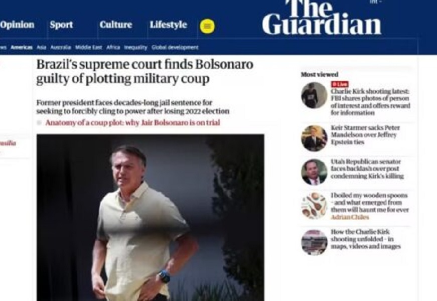 Em meio à extensa repercussão mundial da condenação do golpista, o NYT considera a sentença uma “decisão histórica” do STF contra a trama golpista. Já o inglês Guardian ressalta que plano de Bolsonaro era “aniquilar a democracia no Brasil após perder as eleições”