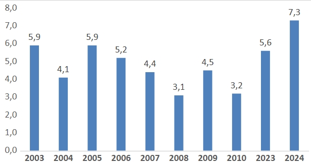 Ao longo deste terceiro mandato, o governo Lula já destinou ao pagamento de juros da dívida pública o equivalente a R$ 2,1 tri em 31 meses (janeiro de 2023 a julho 2025). De acordo com dados da Secretaria do Tesouro Nacional (STN), o total destinado a esta mesma rubrica durante os 96 meses de seus dois primeiros mandatos (2003 a 2010) a valores presentes foi de R$ 2,6 tri. É bem verdade que os números podem esconder a realidade de um estoque de dívida pública que cresceu entre os dois períodos comparados e também podem ocultar as variações distintas na taxa SELIC ocorridas ao longo dos anos. Assim podemos utilizar o conceito do impacto do fluxo de juros pagos em relação ao PIB de cada ano. Neste caso, veremos que essa proporção alcançou uma média de 4,5% durante os oito anos dos mandatos iniciais. E que essa média anual sobe para 6,4% para o biênio 2023/24. Ou seja, não apenas o volume de juros pagos cresceu em termos reais (descontada a inflação) na comparação tão proclamada por Lula durante a campanha eleitoral, mas também esse índice se elevou em mais de 42% em termos do impacto de juros sobre o Produto Interno.