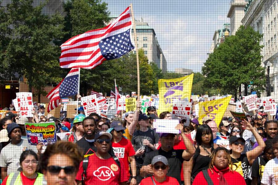 Ao coro de “Resista à tirania” e “Trump renuncia”, uma multidão tomou as ruas de Washington para protestar contra o envio de tropas federais e da Guarda Nacional neste sábado (6), erguendo uma barreira humana contra o “regime fascista” e a escalada de operações contra os imigrantes. Faixas e cartazes condenando Trump com Hitler foram erguidos ao longo do protesto na terceira maior cidade dos Estados Unidos, tomada mais de 2.000 soldados, incluindo de seis estados governados por republicanos.