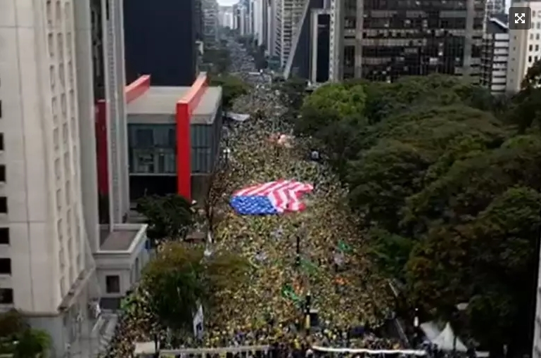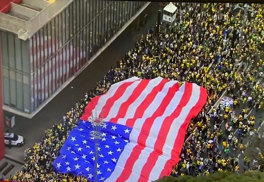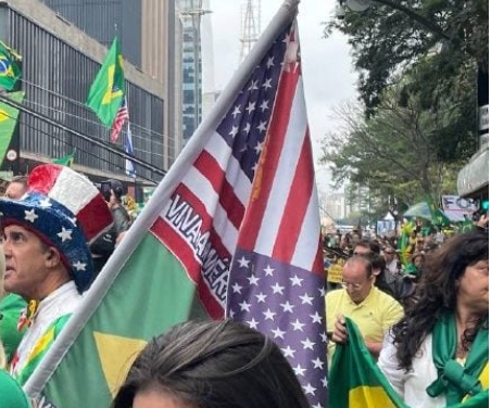Traíras bolsonaristas estendem bandeira dos EUA em apoio a Trump no dia da Independência